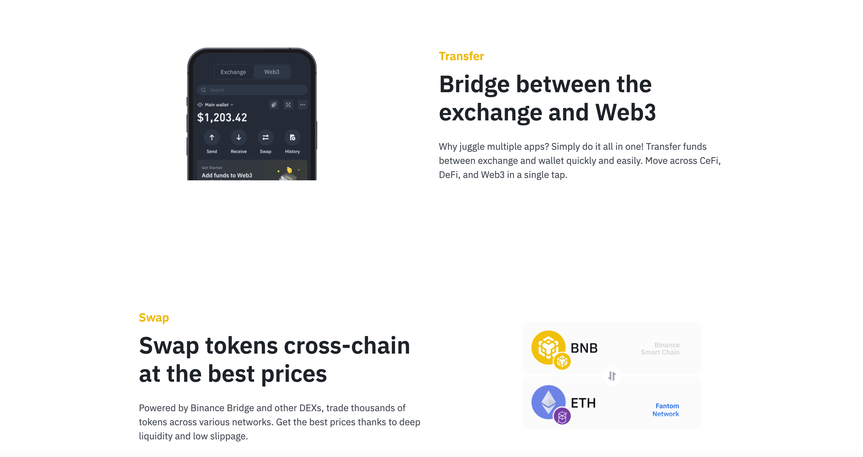 Integration with Binance Exchange: Funds can be easily transferred between Binance Wallet and Binance Exchange accounts.
