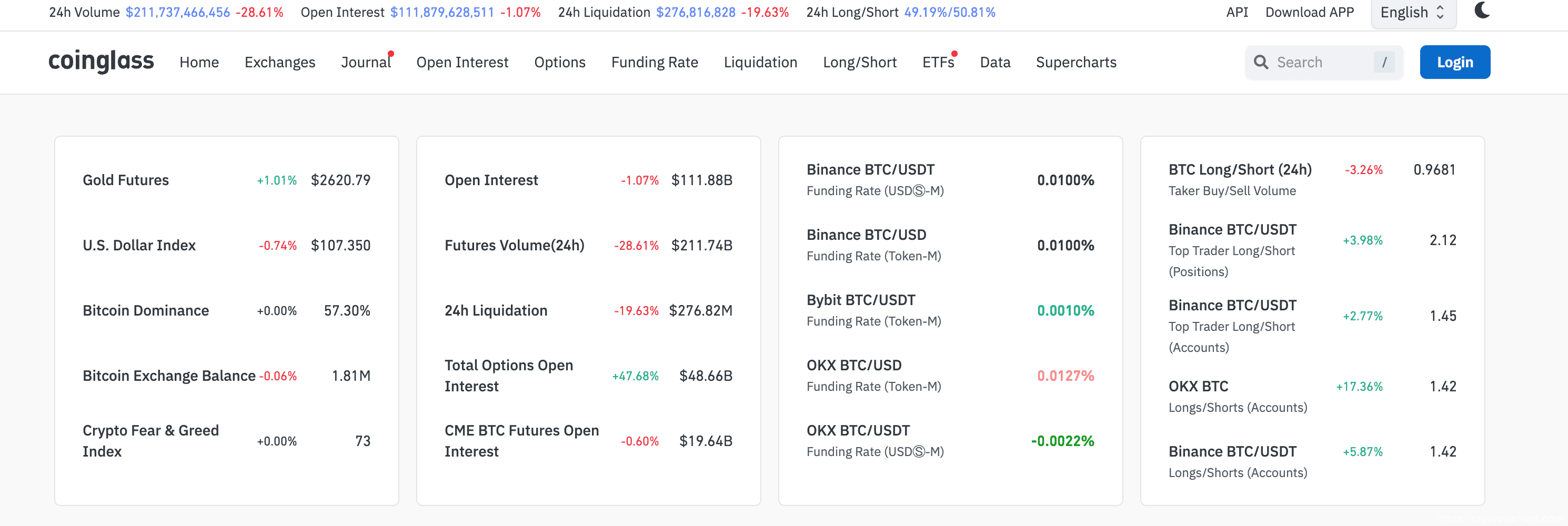 1. **Market Data and Analysis**: CoinGlass offers a wide range of market data including price trends, contract trading volumes, positions, funding rates, liquidations, and options data for various cryptocurrency derivatives.