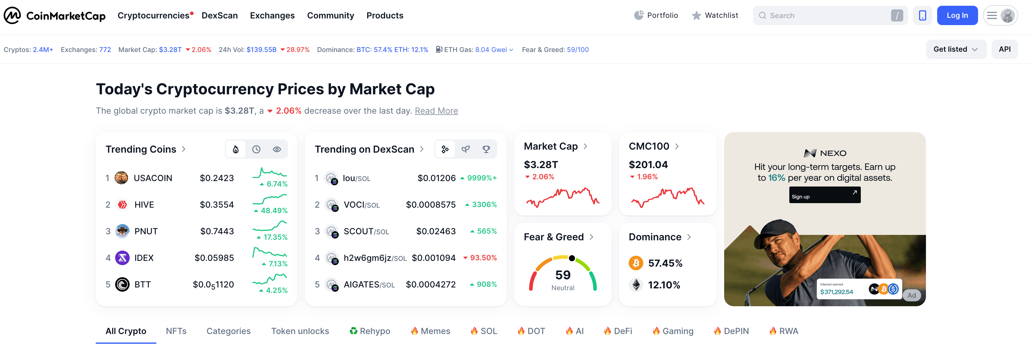 1. **Cryptocurrency Price Tracking**: CoinMarketCap offers real-time tracking of cryptocurrency prices, allowing users to see the current price, trading volume, and market capitalization of each cryptocurrency.