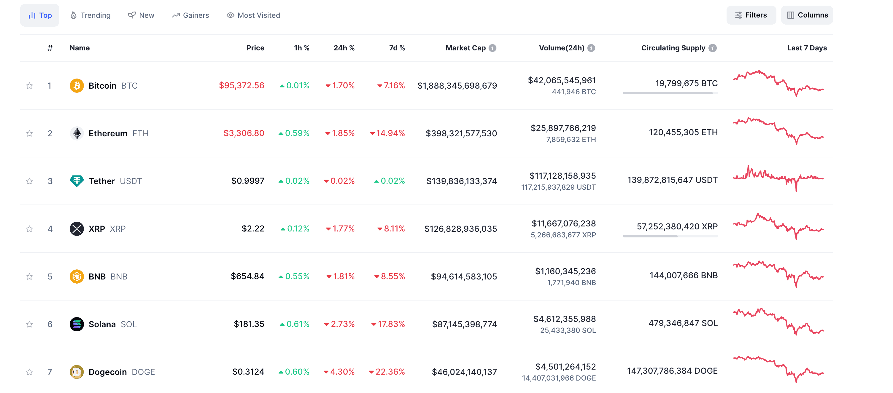 2. **Market Cap Rankings**: Cryptocurrencies are ranked based on their market capitalization, giving users a clear view of the relative size and significance of each cryptocurrency in the market.