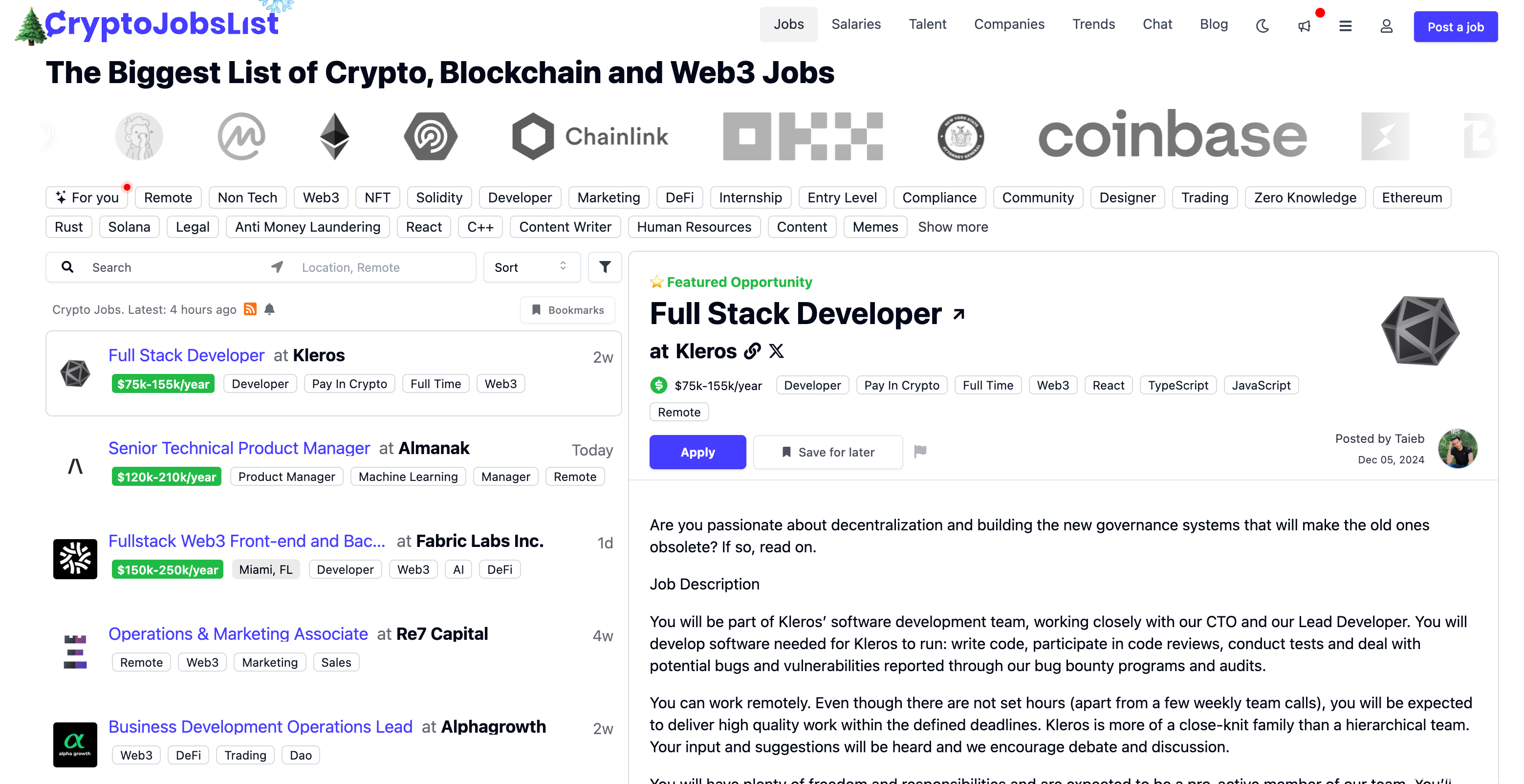 3. **Community Focus**: Founded by Raman Shalupau, Crypto Jobs List is more than just a job portal; it’s a community that bridges the gap between top talent and innovative projects in the crypto space.