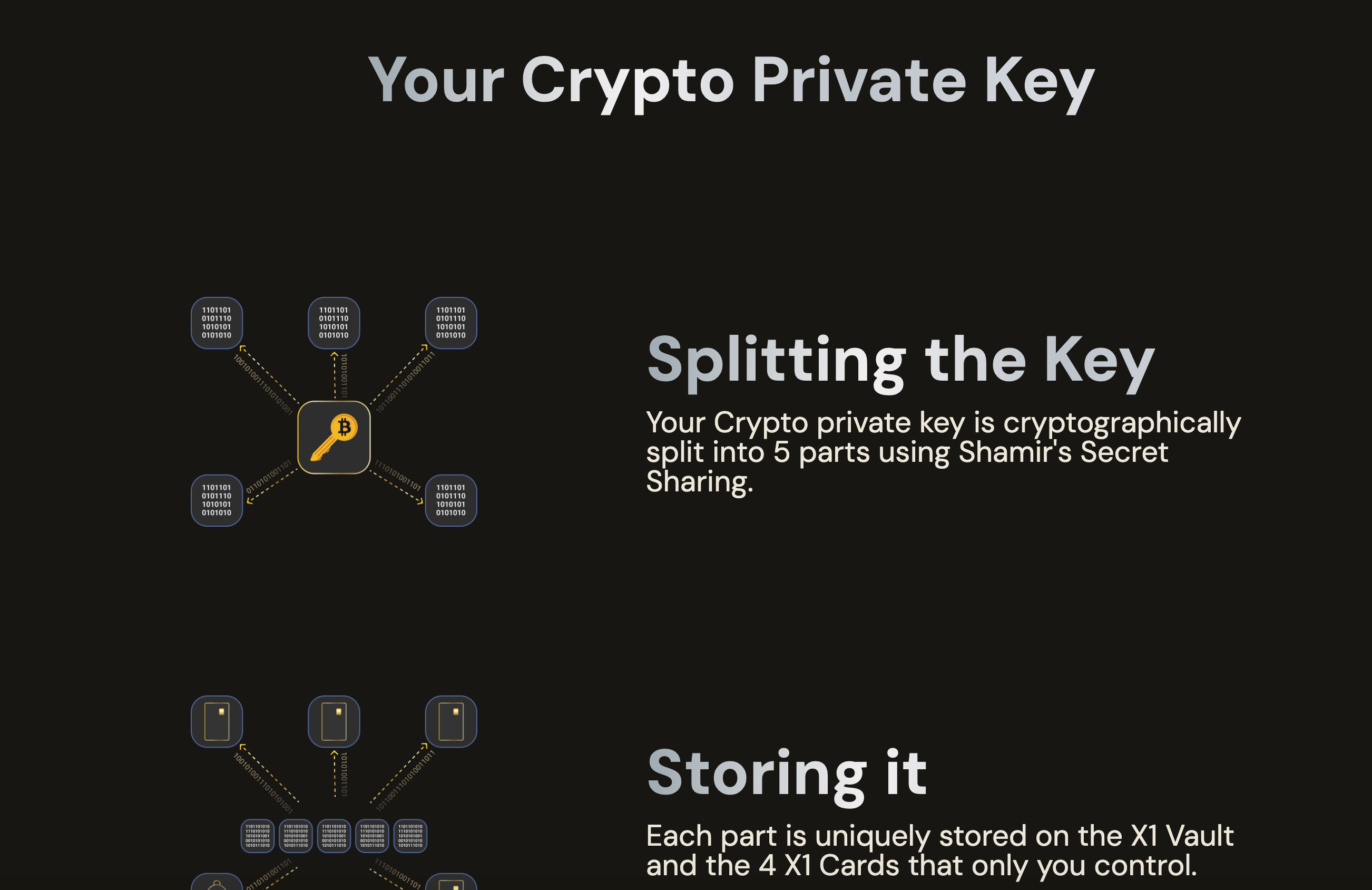 - Cypherock uses Shamir’s Secret Sharing to split the private key into multiple shares. This ensures that no single point of failure exists, as the key can only be reconstructed with a predefined number of shares.
