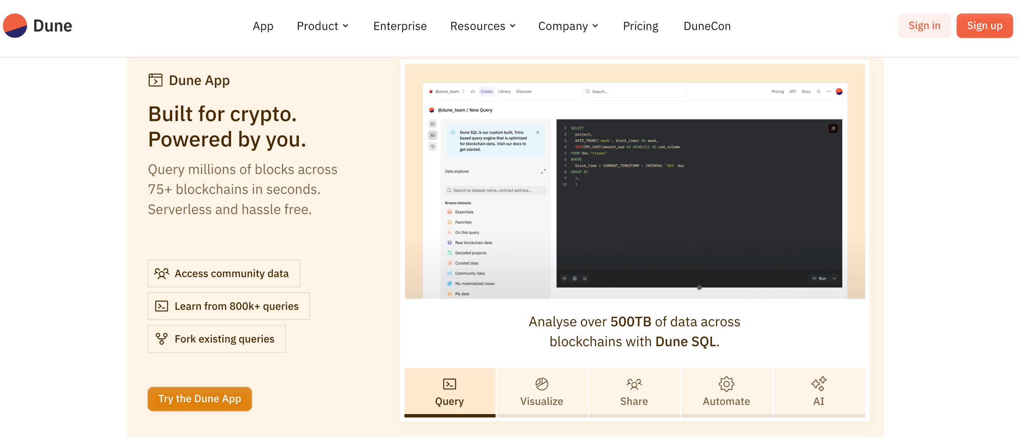 Dune Analytics official site: https://dune.com/home