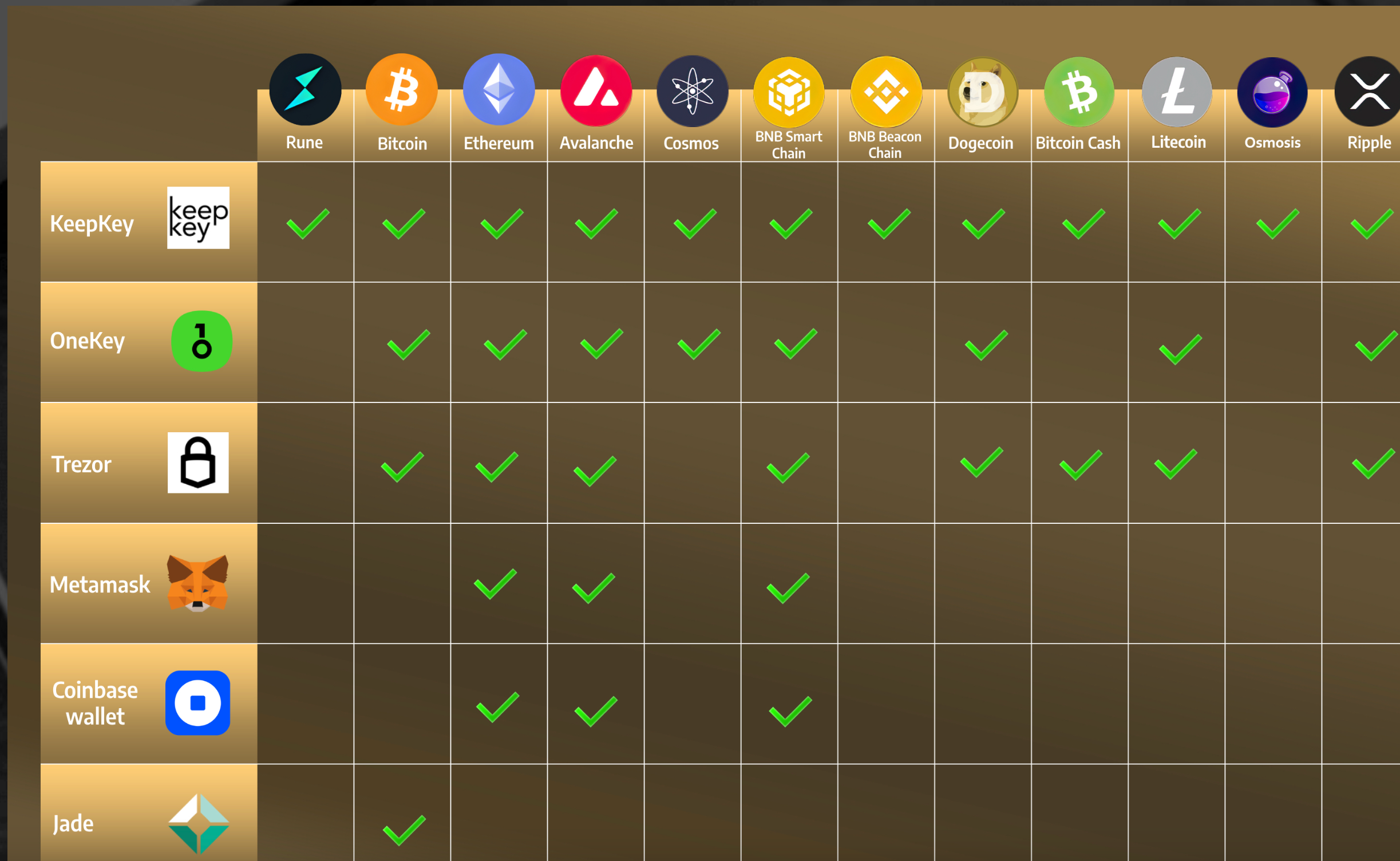 | Feature/Brand | KeepKey | Ledger Nano X | Trezor Model T | SafePal S1 |