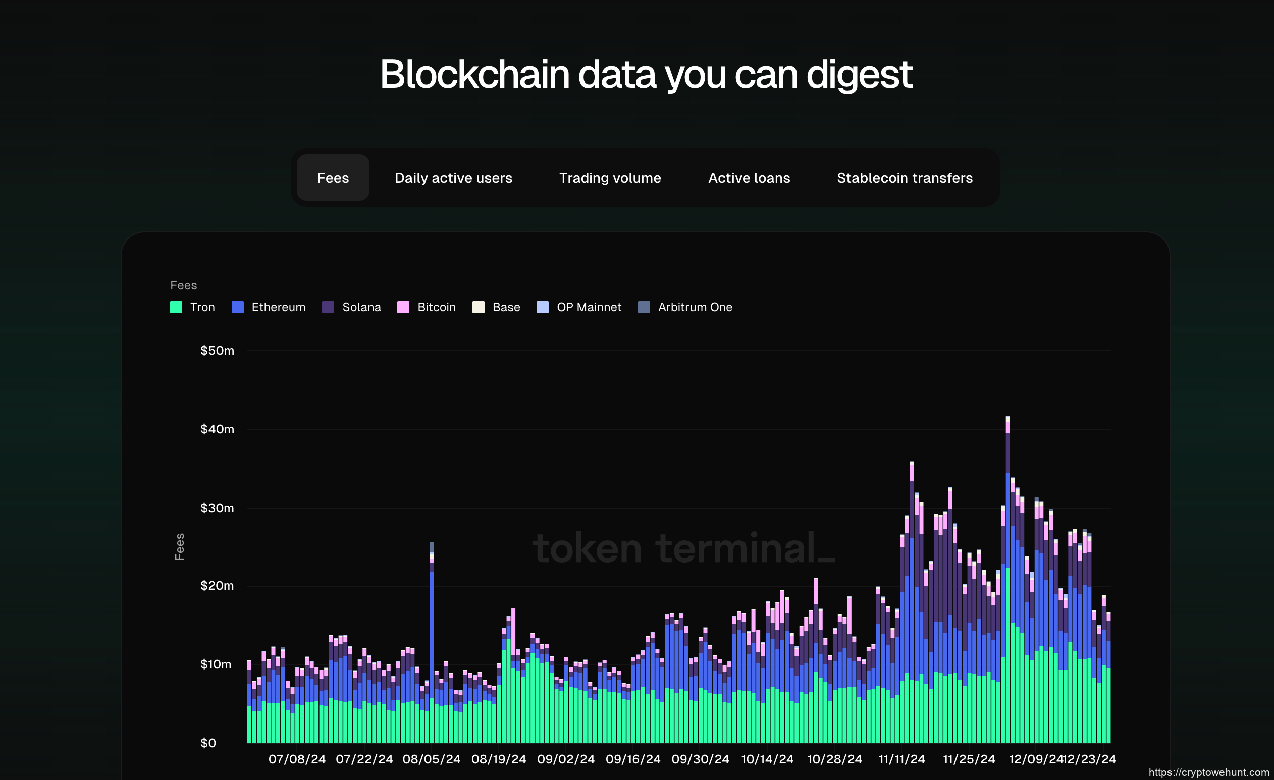 Token Terminal is a comprehensive on-chain data platform that specializes in standardizing financial and alternative data for popular blockchains and decentralized applications.
