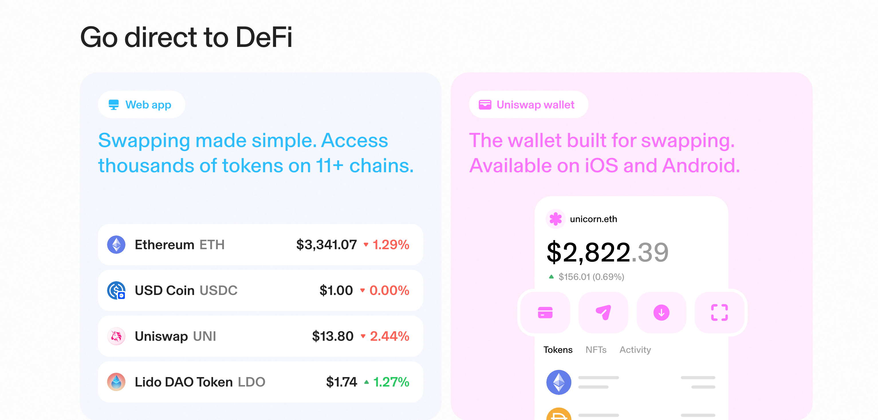 10. **Interface and Integrations**: Uniswap offers a user-friendly interface and is integrated with various wallet providers and DeFi platforms, making it easy for users to access and trade.