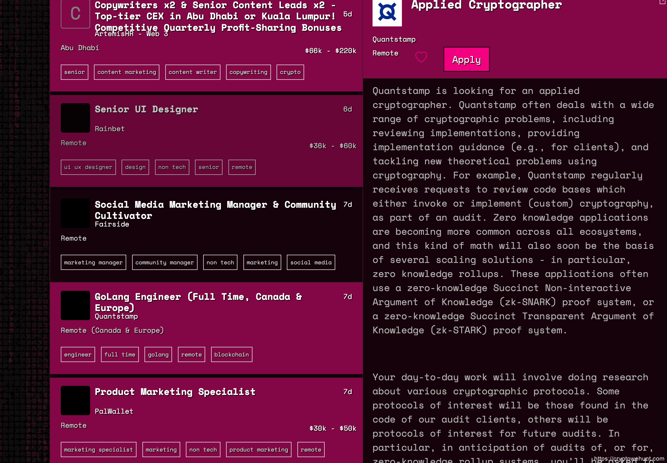 web3 jobs official site: https://web3.career/